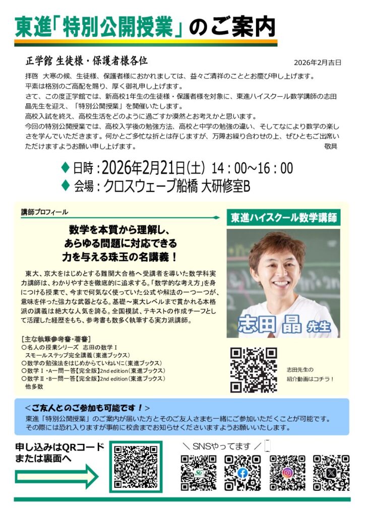 正学館では、新高校1年生および保護者の皆さまを対象に、