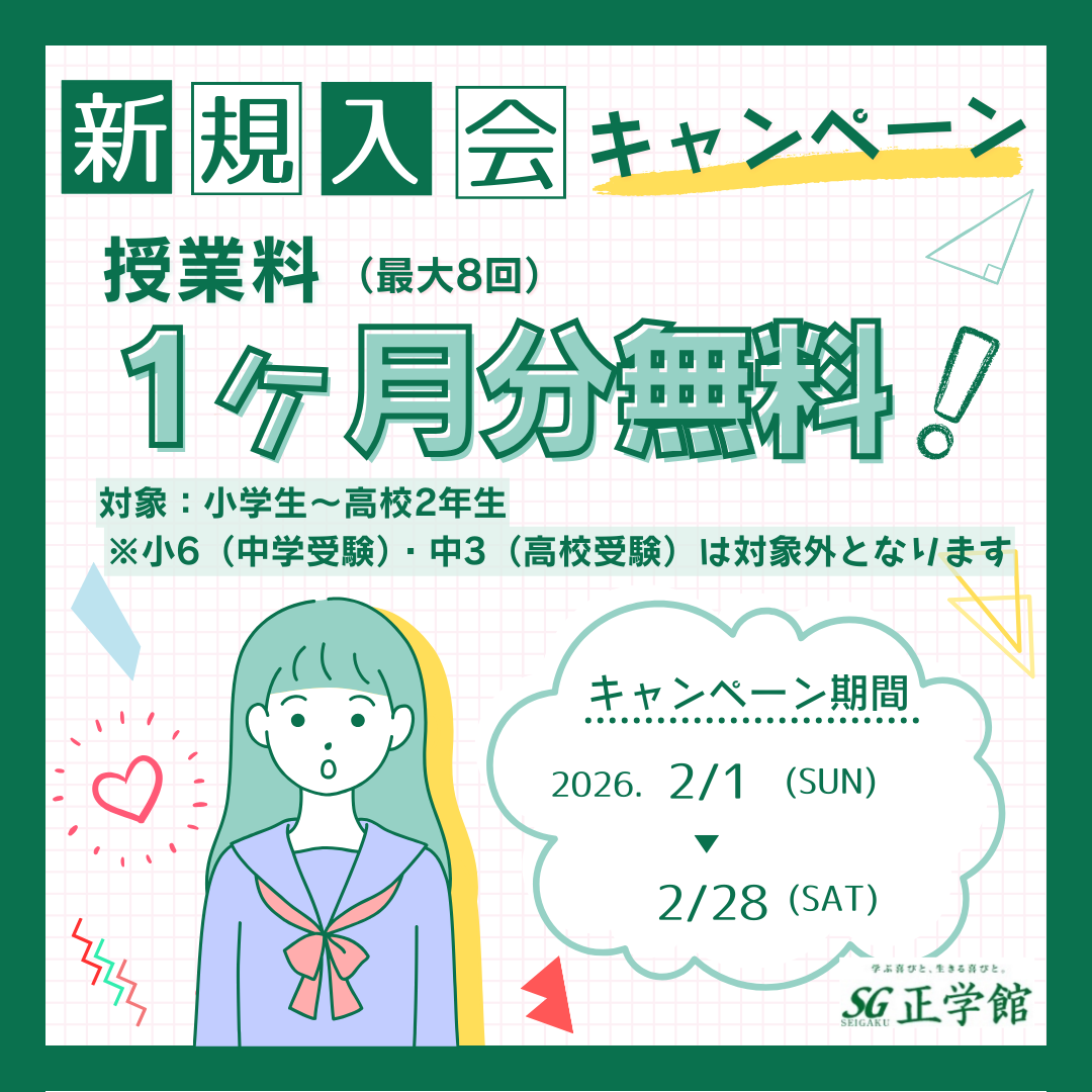 2026年度 正学館 新規入会キャンペーン【2/1〜2/28限定】