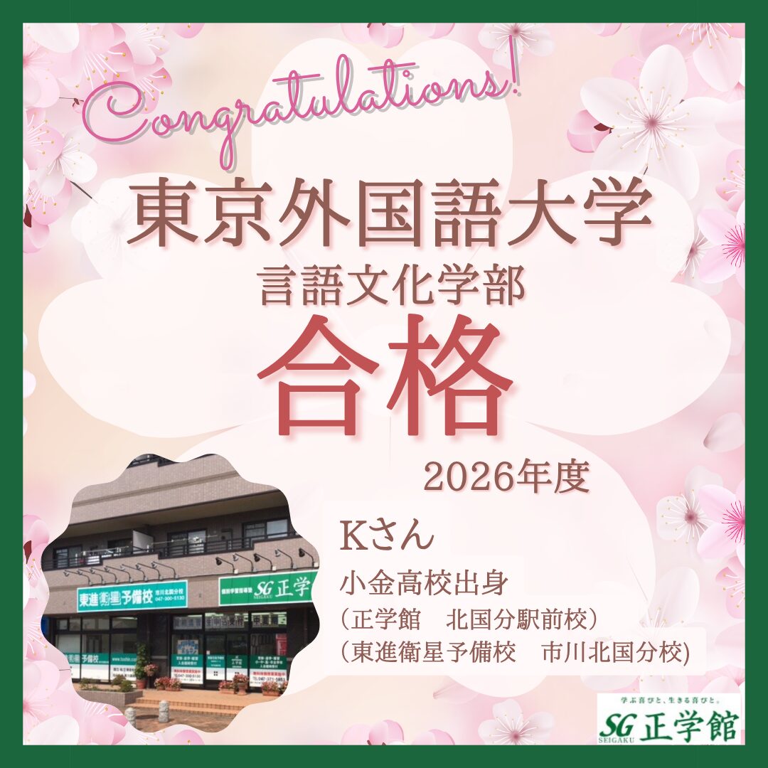 【合格者インタビュー】東京外国語大学 言語文化学部| 市川北国分校