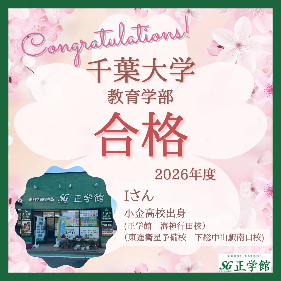 いつもご覧いただきありがとうございます!今回は千葉大学に合格した、正学館 海神行田校の生徒にお話を聞きました! ■ いつ頃から東進衛星予備校に通い始めましたか? 2025年4月からです。 ■通おうと思ったきっかけは何ですか? 大学受験できる塾を探していた時に、...